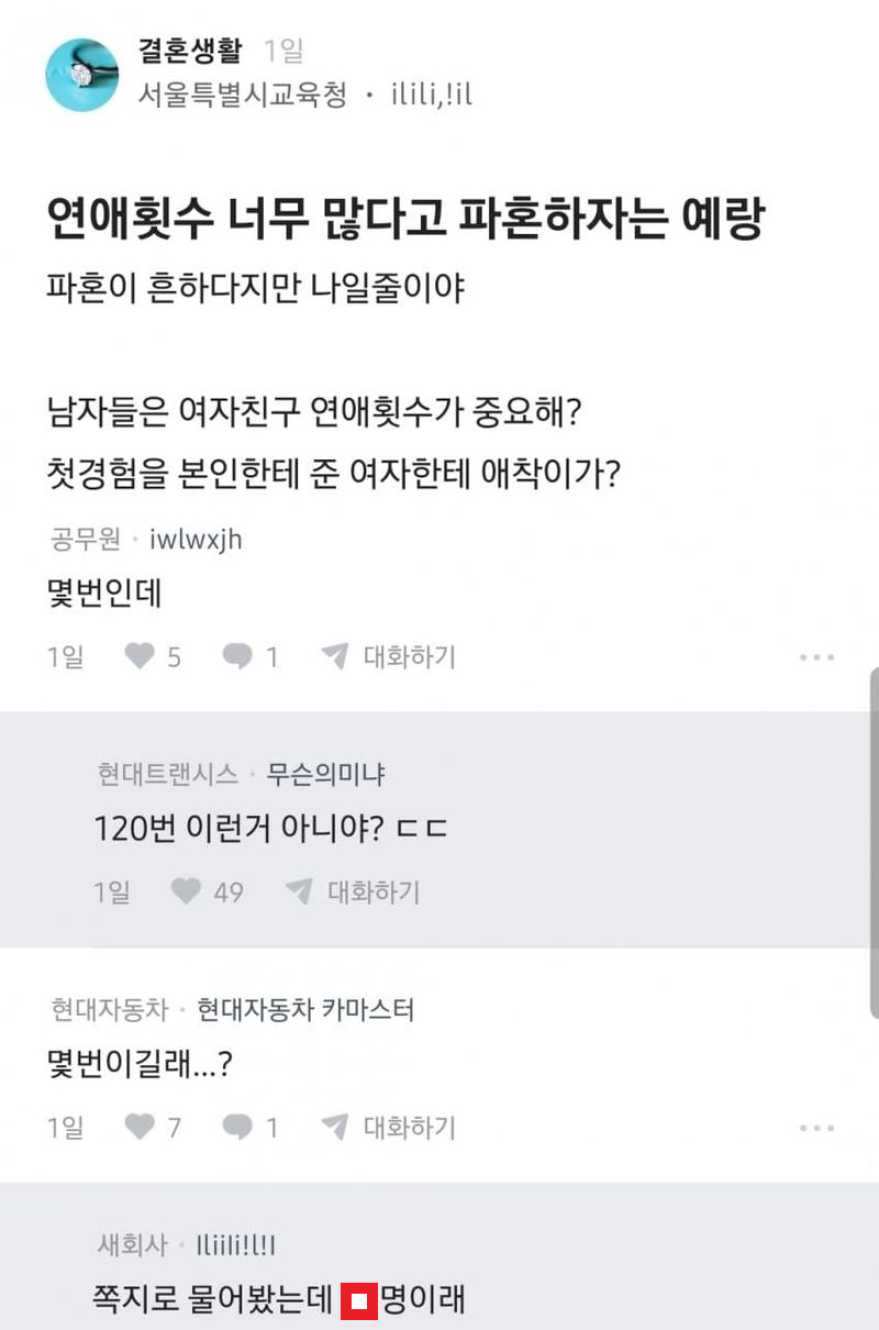 "연애횟수 많아서 거르는 남자는 찐따임 ㅋ"