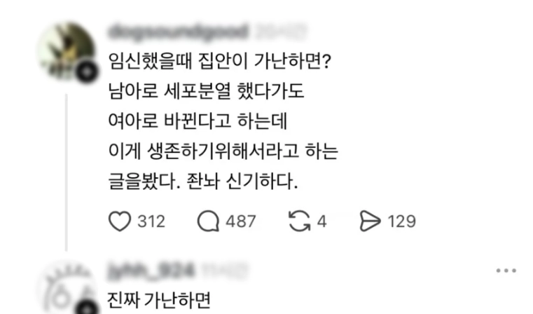 리와인드뉴스임신했을 때 집안이 가난하면 여아로 태어난다.위키뉴스 기자입력북마크공유가글자크기프린트댓글 임신했을 때 집안이 가난하면 여아로 태어난다. 위키뉴스 기자[email protected]카카오톡페이스북트위터밴드URL복사