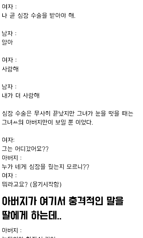 유머여친이 심장 수술 후..위키뉴스 기자입력북마크공유가글자크기프린트댓글 여친이 심장 수술 후.. (+반전) 위키뉴스 기자[email protected]카카오톡페이스북트위터밴드URL복사