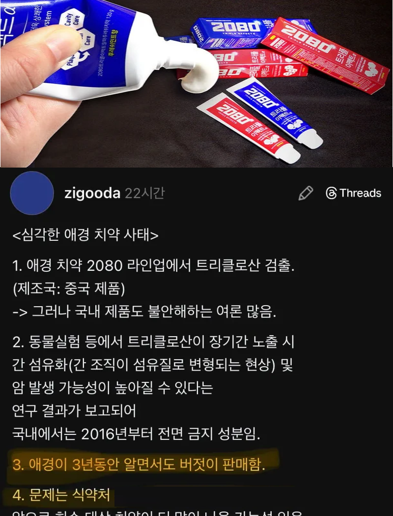 유머충격적인 2080 치약 사건 ㄷㄷ위키뉴스 기자입력북마크공유가글자크기프린트댓글충격적인 2080 치약 사건 ㄷㄷ 집에있는거 버려야하나봄...오늘도 저걸로 닦았는데출처 - FM코리아위키뉴스 기자[email protected]카카오톡페이스북트위터밴드URL복사