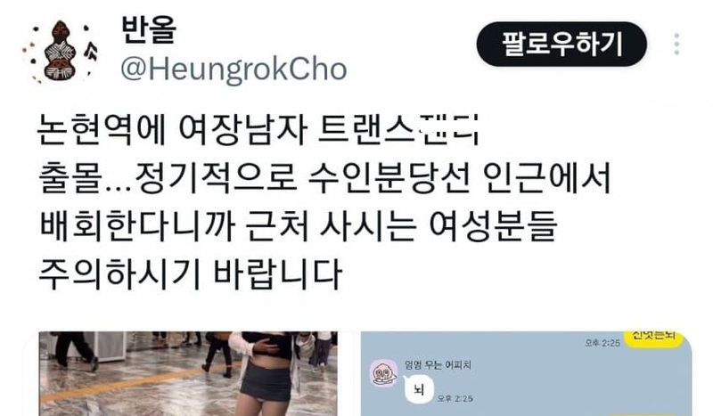 유머혐)서울 논현역에 여장남자 출몰위키뉴스 기자입력북마크공유가글자크기프린트댓글혐)서울 논현역에 여장남자 출몰 위키뉴스 기자[email protected]카카오톡페이스북트위터밴드URL복사