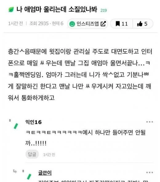 리와인드뉴스나 애엄마 울리는데 소질있나봐위키뉴스 기자입력북마크공유가글자크기프린트댓글 나 애엄마 울리는데 소질있나봐 위키뉴스 기자[email protected]카카오톡페이스북트위터밴드URL복사