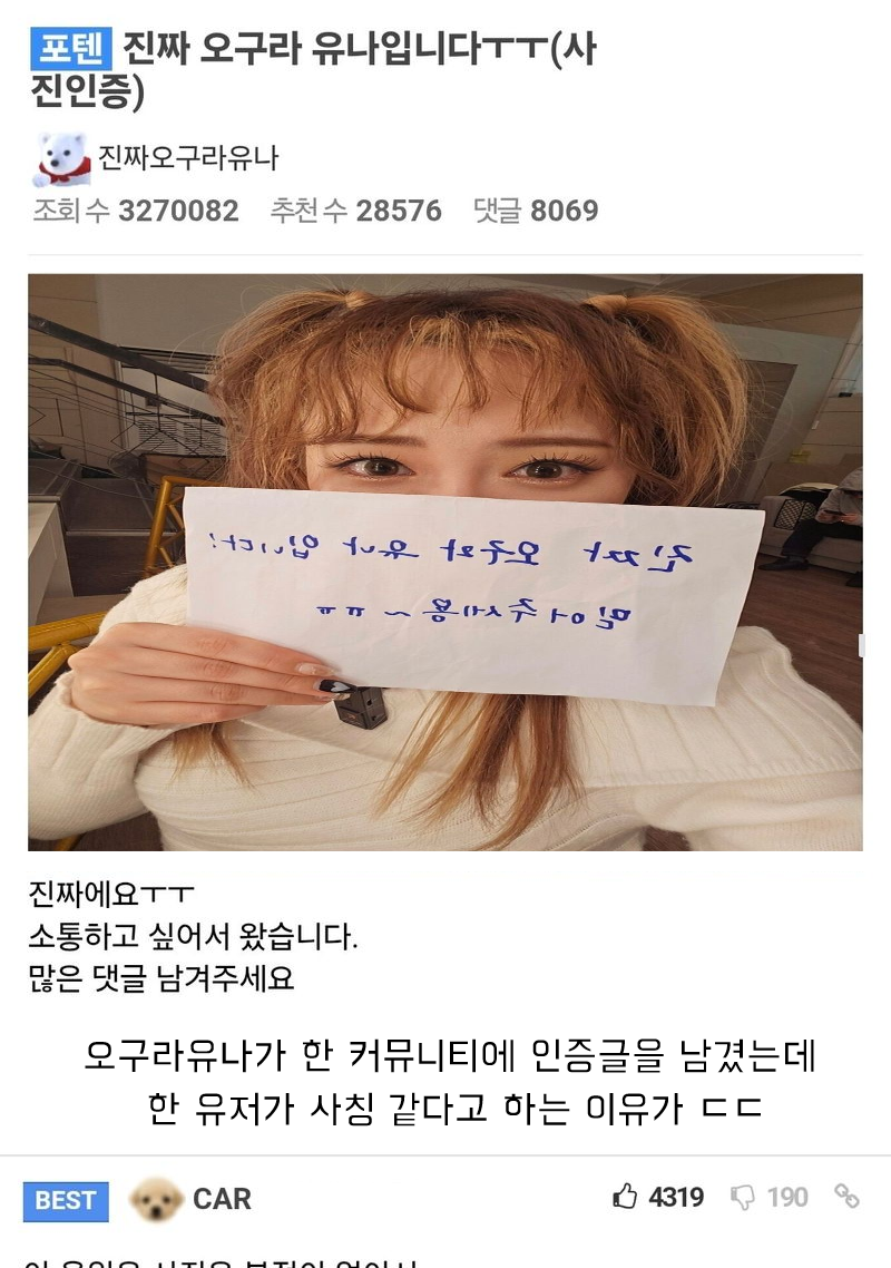 유머아무리봐도 ㅅr칭범 같은 오구라유나 인증글위키뉴스 기자입력북마크공유가글자크기프린트댓글아무리봐도 ㅅr칭범 같은 오구라유나 인증글위키뉴스 기자[email protected]카카오톡페이스북트위터밴드URL복사