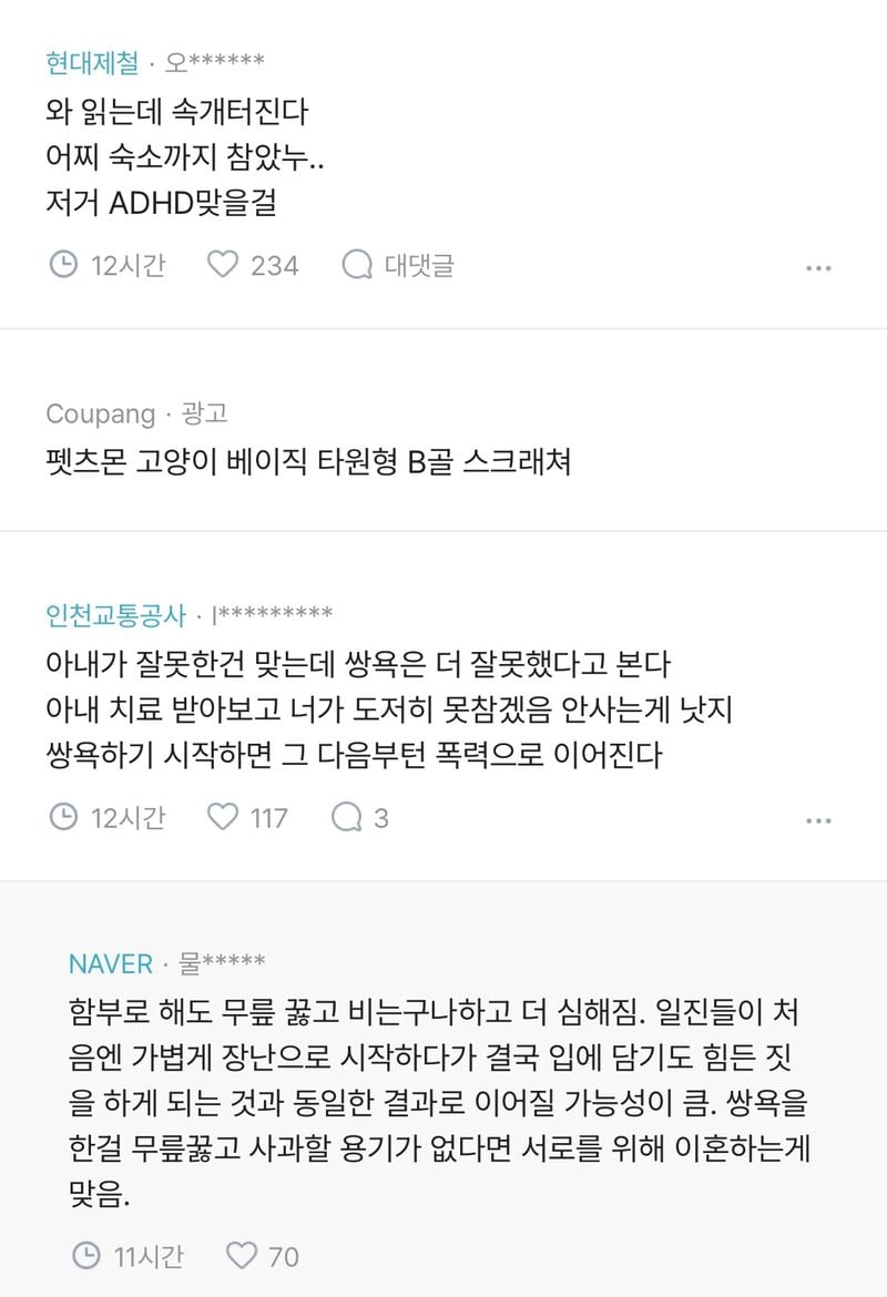 유머아내한테 처음으로 ㅆ욕 날렸어위키뉴스 기자입력북마크공유가글자크기프린트댓글블라)아내한테 처음으로 ㅆ욕 날렸어 위키뉴스 기자[email protected]카카오톡페이스북트위터밴드URL복사