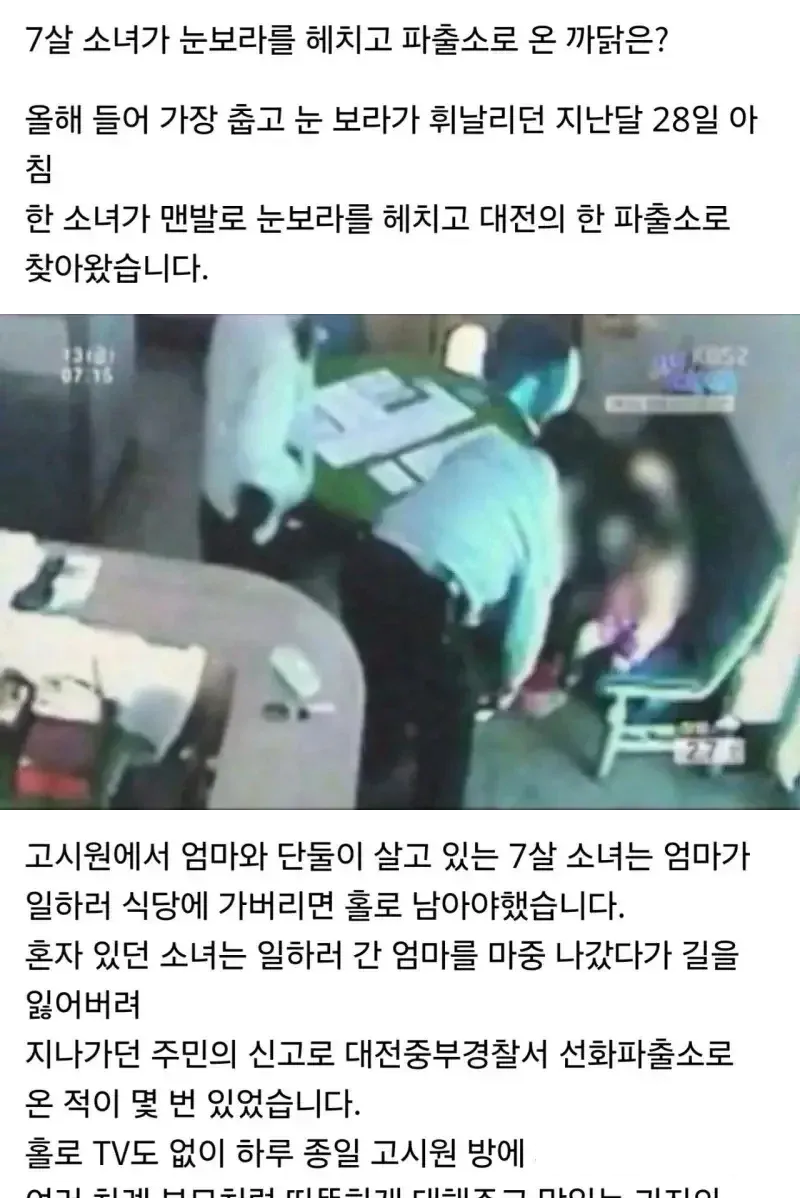 유머7살 소녀가 눈보라를 헤치고 파출소로 온 이유위키뉴스 기자입력북마크공유가글자크기프린트댓글7살 소녀가 눈보라를 헤치고 파출소로 온 이유 위키뉴스 기자[email protected]카카오톡페이스북트위터밴드URL복사