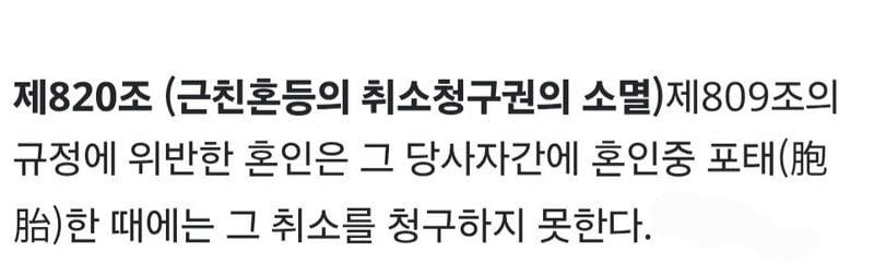 혼인 중 임신 했으면 혼인 취소 안 당함.