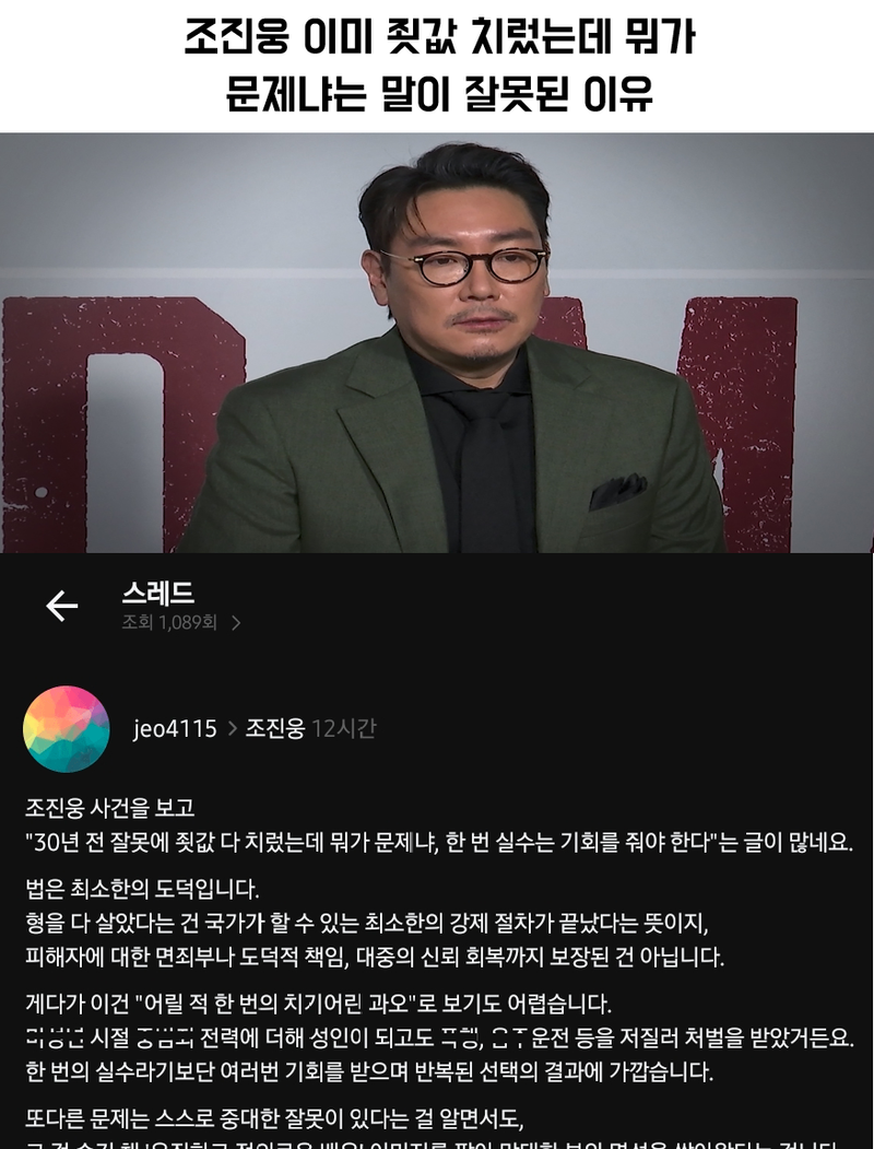 유머조진웅 이미 죗값 치렀는데 뭐가 문제냐는 말이 잘못된 이유위키뉴스 기자입력북마크공유가글자크기프린트댓글 위키뉴스 기자[email protected]카카오톡페이스북트위터밴드URL복사