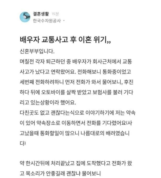 리와인드뉴스배우자가 교통사고 난 다음날 이혼통보함위키뉴스 기자입력북마크공유가글자크기프린트댓글 배우자가 교통사고 난 다음날 이혼통보함 위키뉴스 기자[email protected]카카오톡페이스북트위터밴드URL복사