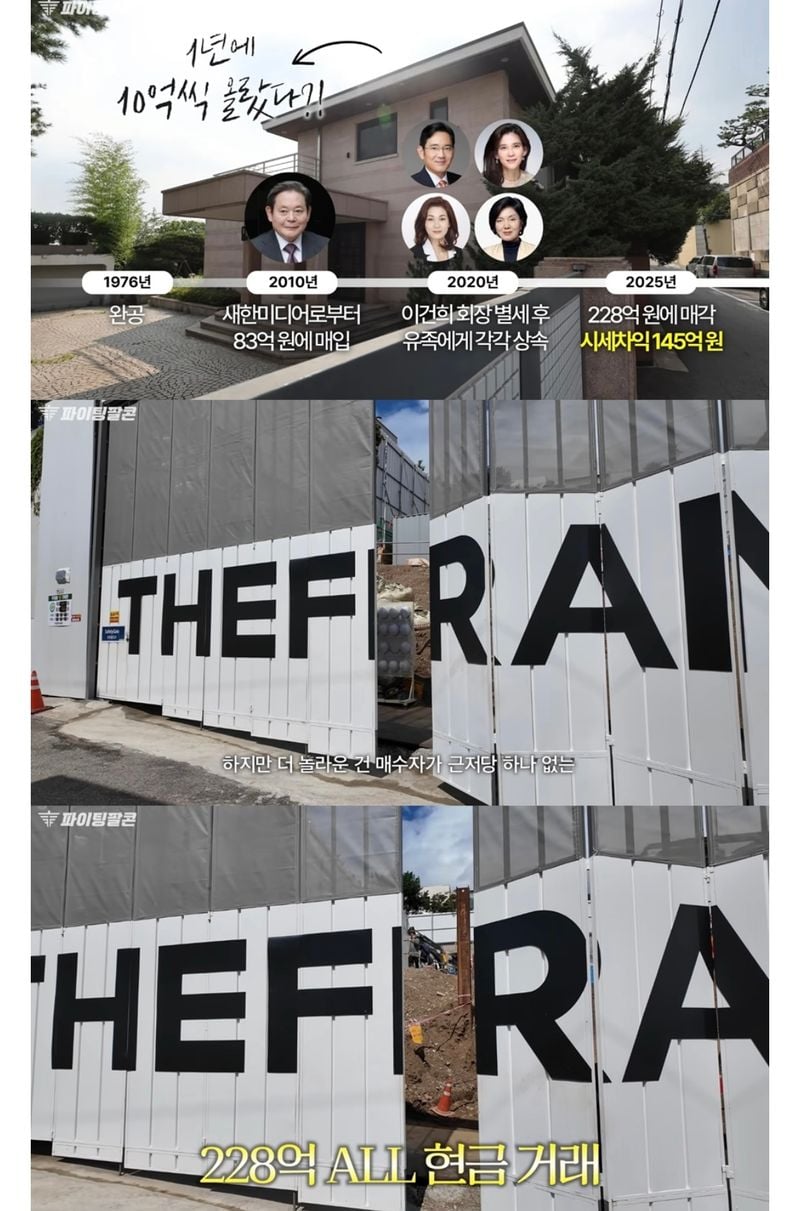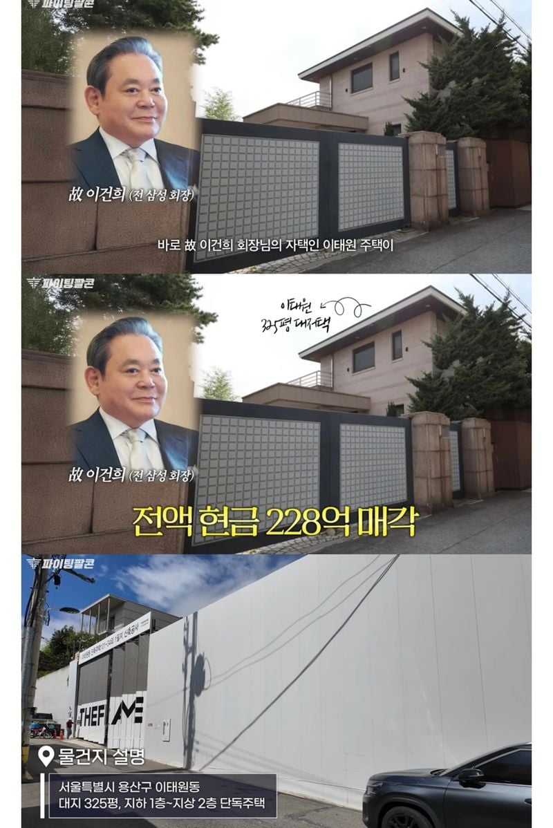 유머228억에 팔린 고 이건희(전 삼성 회장) 주택 그리고 충격적인 사실 ㄷㄷ위키뉴스 기자입력북마크공유가글자크기프린트댓글228억에 팔린 고 이건희 주택... 충격적인 사실 위키뉴스 기자[email protected]카카오톡페이스북트위터밴드URL복사