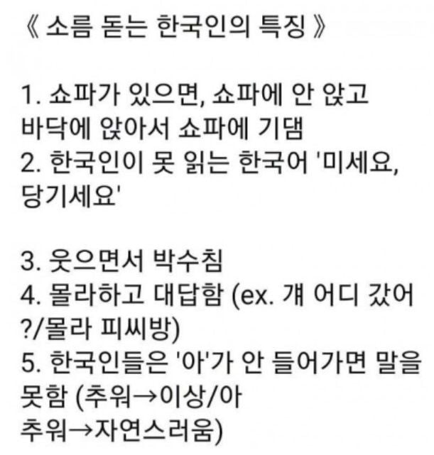 유머한국에 태어나야만 가질 수 있는 한국인 특성위키뉴스 기자입력북마크공유가글자크기프린트댓글한국에 태어나야만 가질 수 있는 한국인 특성 위키뉴스 기자[email protected]카카오톡페이스북트위터밴드URL복사