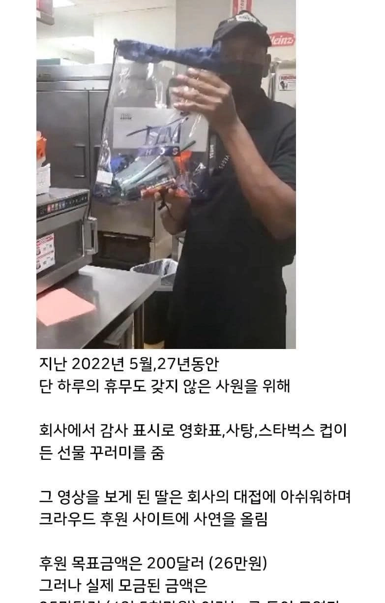 회사의 대접에 아쉬워 하며 크라우드 후원 사이트에 사연을 올렸다.