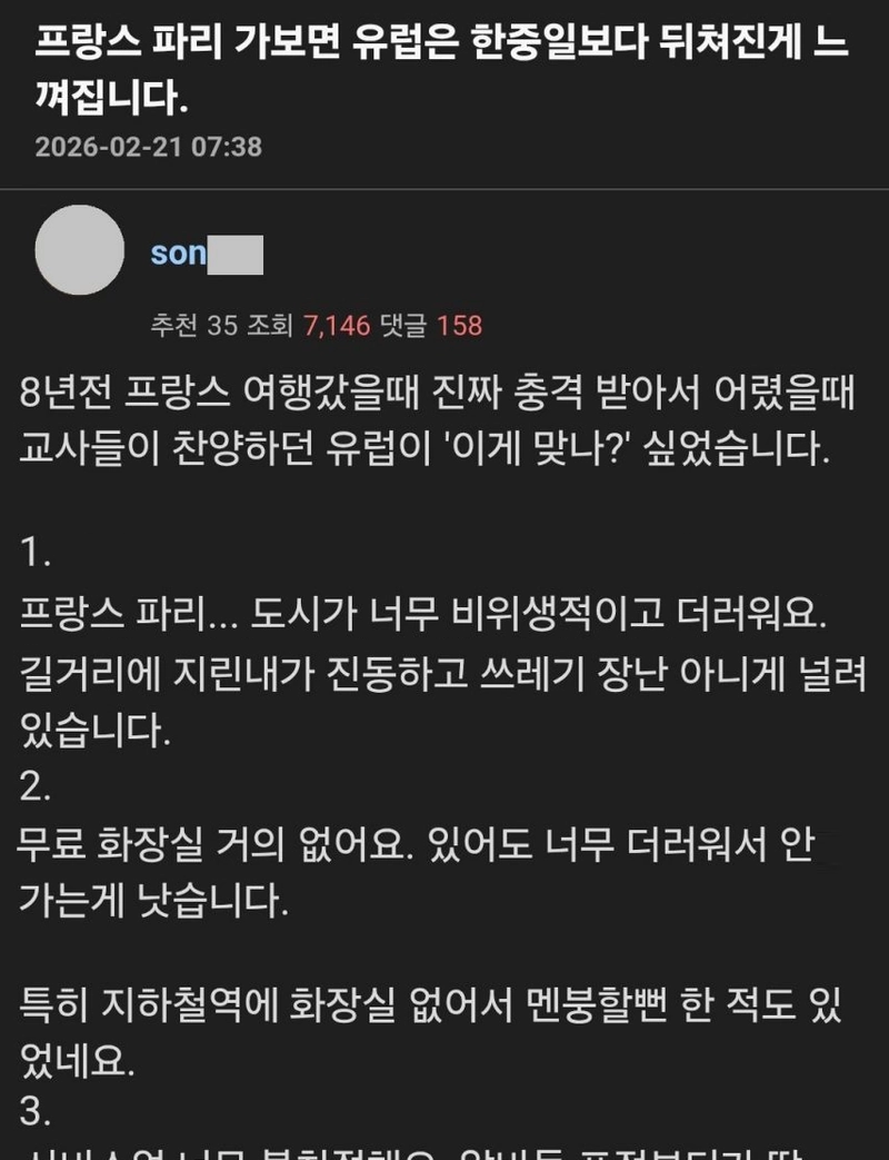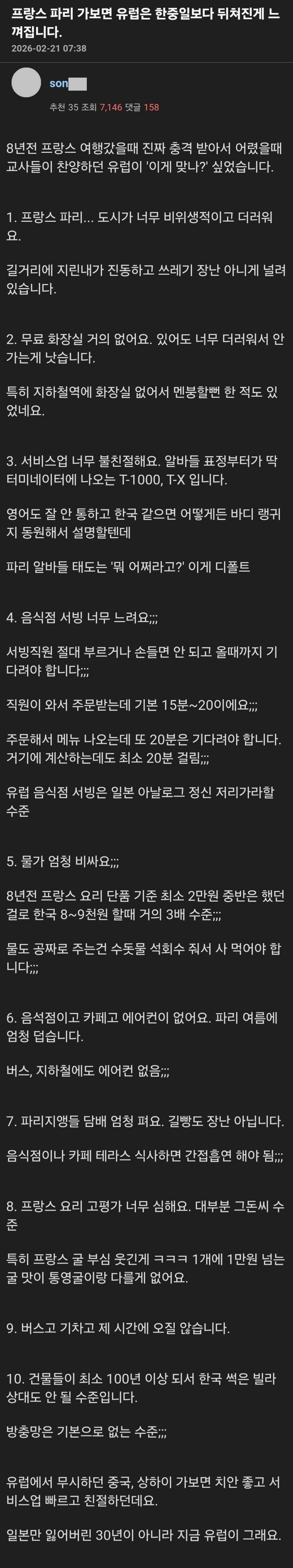 유머프랑스 파리 가보면 유럽은 한중일보다 뒤쳐진게 느껴집니다..위키뉴스 기자입력북마크공유가글자크기프린트댓글프랑스 파리 가보면 유럽은 한중일보다 뒤쳐진게 느껴집니다..위키뉴스 기자[email protected]카카오톡페이스북트위터밴드URL복사