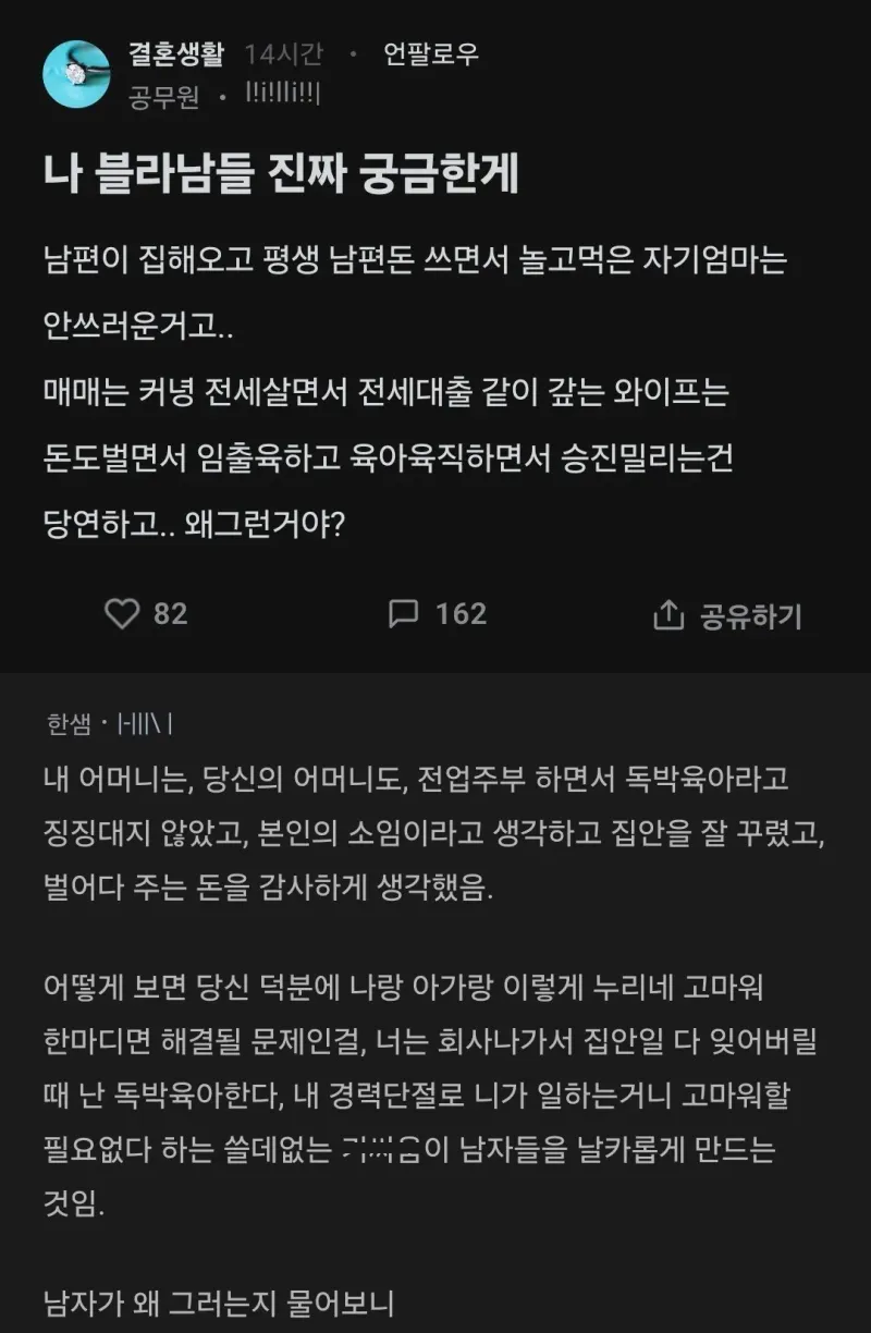 유머블라남들이 궁금한 블라녀위키뉴스 기자입력북마크공유가글자크기프린트댓글블라남들이 궁금한 블라녀 놀고먹은 자기엄마 ㅋㅋㅋㅋ위키뉴스 기자[email protected]카카오톡페이스북트위터밴드URL복사