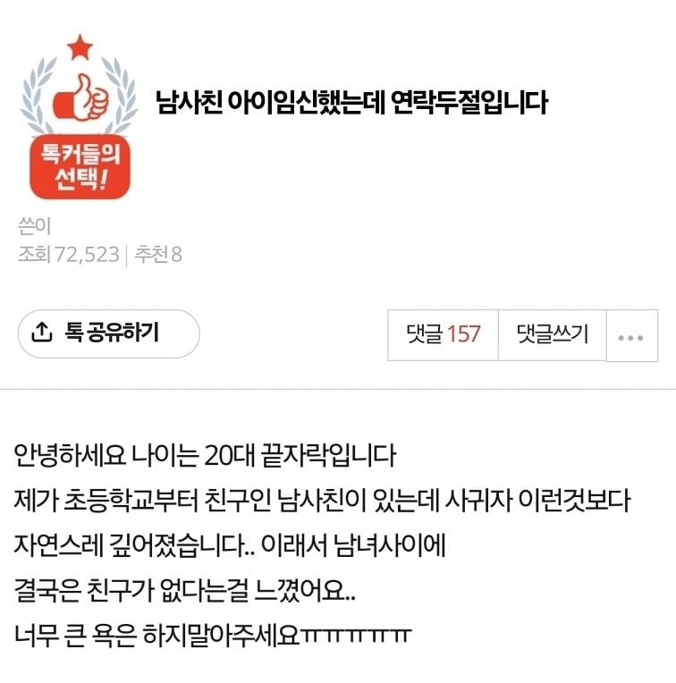 유머남사친 아이 임신했는데 연락두절입니다위키뉴스 기자입력북마크공유가글자크기프린트댓글남사친 아이 임신했는데 연락두절입니다 위키뉴스 기자[email protected]카카오톡페이스북트위터밴드URL복사