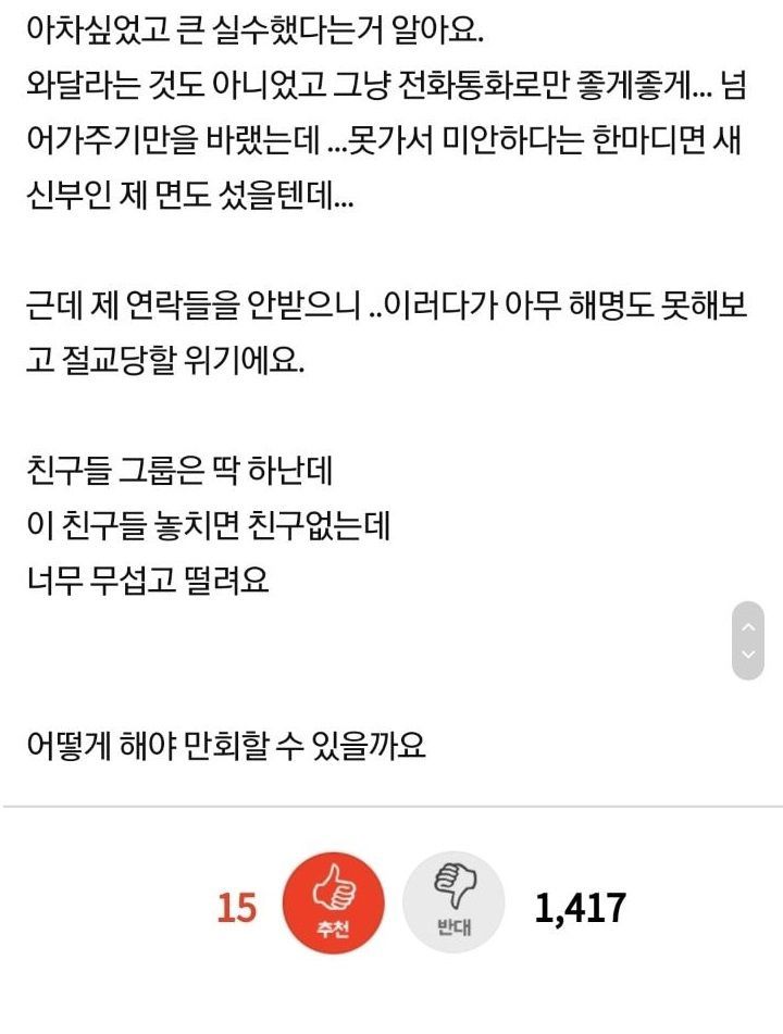 리와인드뉴스집들이 때문에 친구들과 절교 위기입니다..위키뉴스 기자입력북마크공유가글자크기프린트댓글 집들이 때문에 친구들과 절교 위기입니다.. 위키뉴스 기자[email protected]카카오톡페이스북트위터밴드URL복사