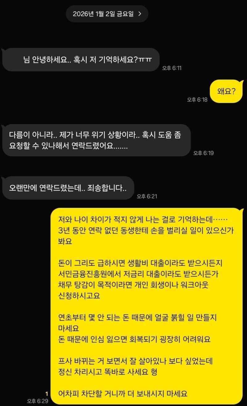 유머3년만에 연락해서 돈을 빌려달라는 지인위키뉴스 기자입력북마크공유가글자크기프린트댓글3년만에 연락해서 돈을 빌려달라는 지인와 칼차단 지리네요위키뉴스 기자[email protected]카카오톡페이스북트위터밴드URL복사
