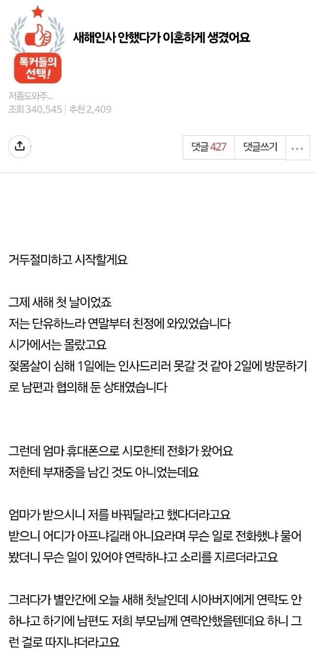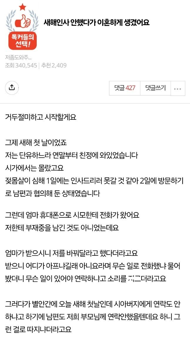 유머새해인사 안했다가 이혼하게 생겼어요위키뉴스 기자입력북마크공유가글자크기프린트댓글새해인사 안했다가 이혼하게 생겼어요 위키뉴스 기자[email protected]카카오톡페이스북트위터밴드URL복사