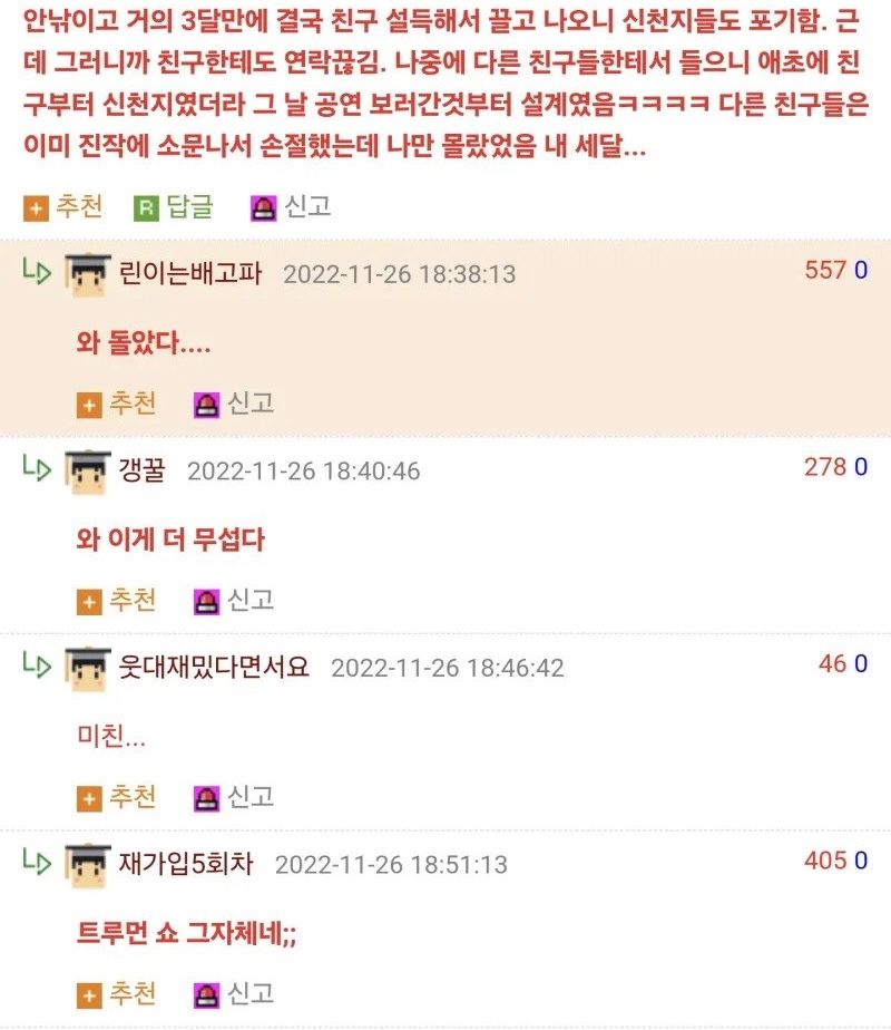 유머신ㅊ지 트루먼쇼 레전드 썰 (+소름돋는 댓글)위키뉴스 기자입력북마크공유가글자크기프린트댓글신천지 트루먼쇼 레전드 썰 +댓글 소름 위키뉴스 기자[email protected]카카오톡페이스북트위터밴드URL복사