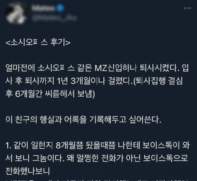 리와인드뉴스소시오ㅍ스 신입 퇴사시킨 썰위키뉴스 기자입력북마크공유가글자크기프린트댓글 소시오ㅍ스 신입 퇴사시킨 썰 위키뉴스 기자[email protected]카카오톡페이스북트위터밴드URL복사