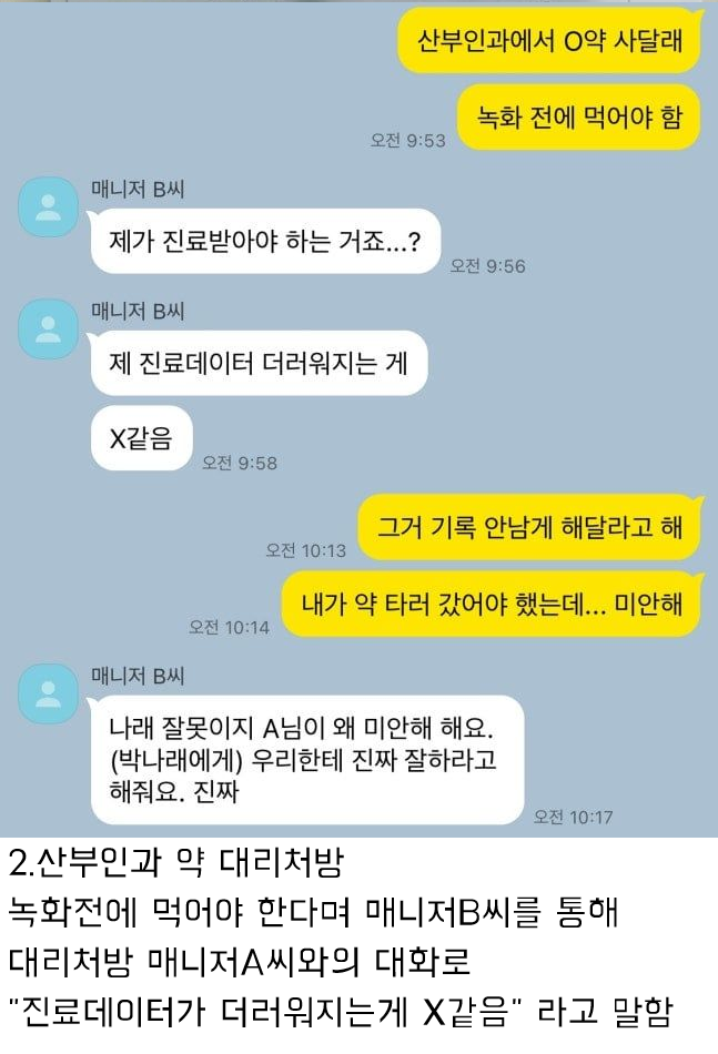 녹화전에 먹어야 한다며 매니저B씨를 통해 대리처방