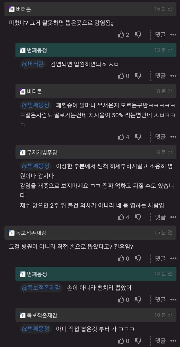 유머집에서 혼자 뺀찌로 철심 뽑은 사람 ㄷㄷ위키뉴스 기자입력북마크공유가글자크기프린트댓글오늘자 철심을 거슬린다고 방금 집에서 뺀치로 빼버린 사람 ㄷㄷㄷㄷㄷ 위키뉴스 기자[email protected]카카오톡페이스북트위터밴드URL복사