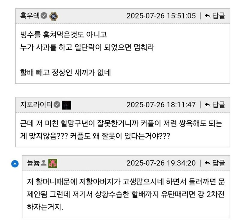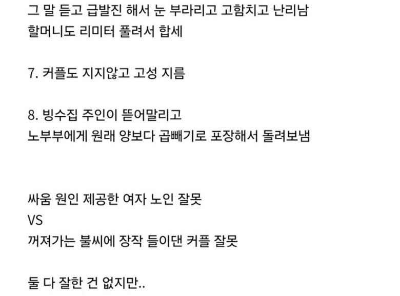 유머팥빙수 집에서 젊은 커플과 노부부 ㅆ움 직관한 썰 ㄷㄷ위키뉴스 기자입력북마크공유가글자크기프린트댓글팥빙수 집에서 젊은 커플 vs 노부부 싸움 위키뉴스 기자[email protected]카카오톡페이스북트위터밴드URL복사