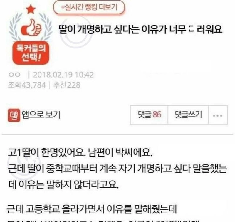리와인드뉴스딸이 개명하고 싶다는 이유가 너무 ㄷ러워요위키뉴스 기자입력북마크공유가글자크기프린트댓글딸이 개명하고 싶다는 이유가 너무 ㄷ러워요 위키뉴스 기자[email protected]카카오톡페이스북트위터밴드URL복사