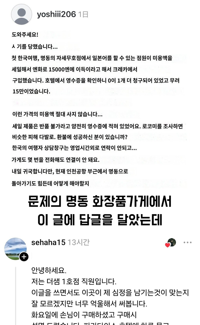 외국인 상대로 화장품 강매했다는 명동 화장품가게 입장