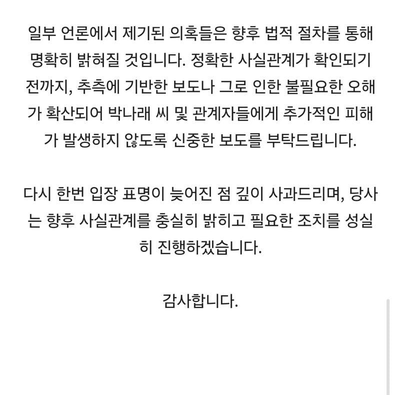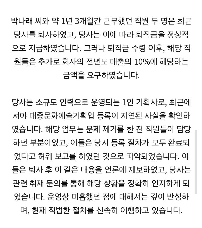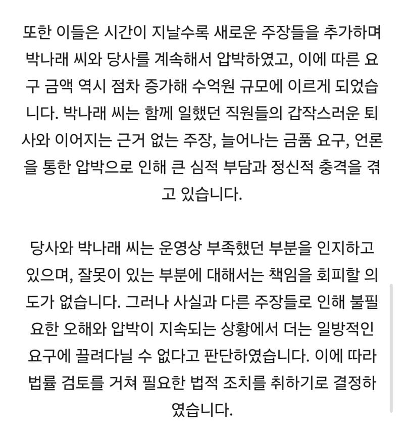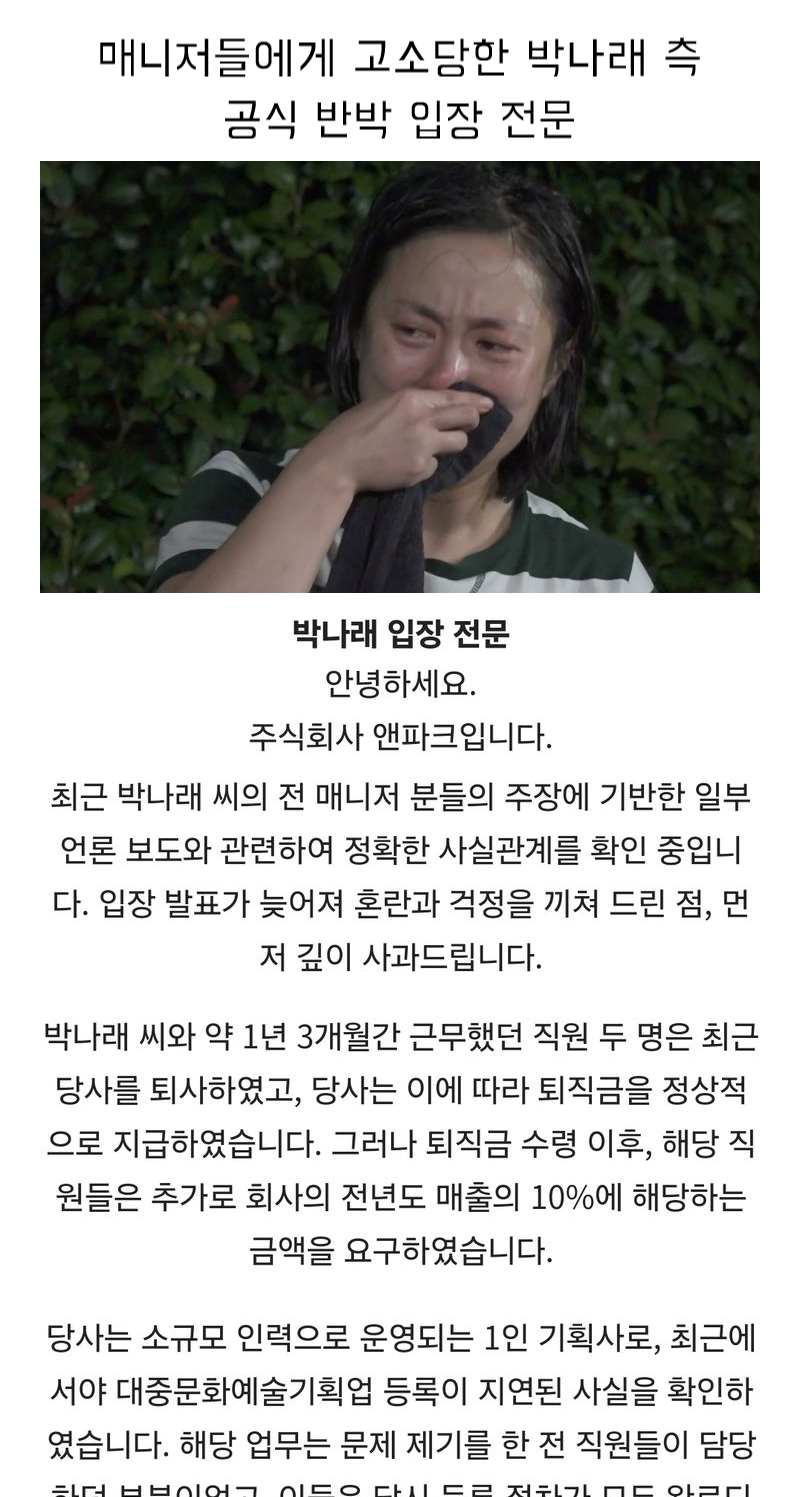 유머매니저들에게 고소당한 박나래 측 공식 반박 입장 전문위키뉴스 기자입력북마크공유가글자크기프린트댓글 매니저들에게 고소당한 박나래 측 공식 반박 입장 전문 위키뉴스 기자[email protected]카카오톡페이스북트위터밴드URL복사
