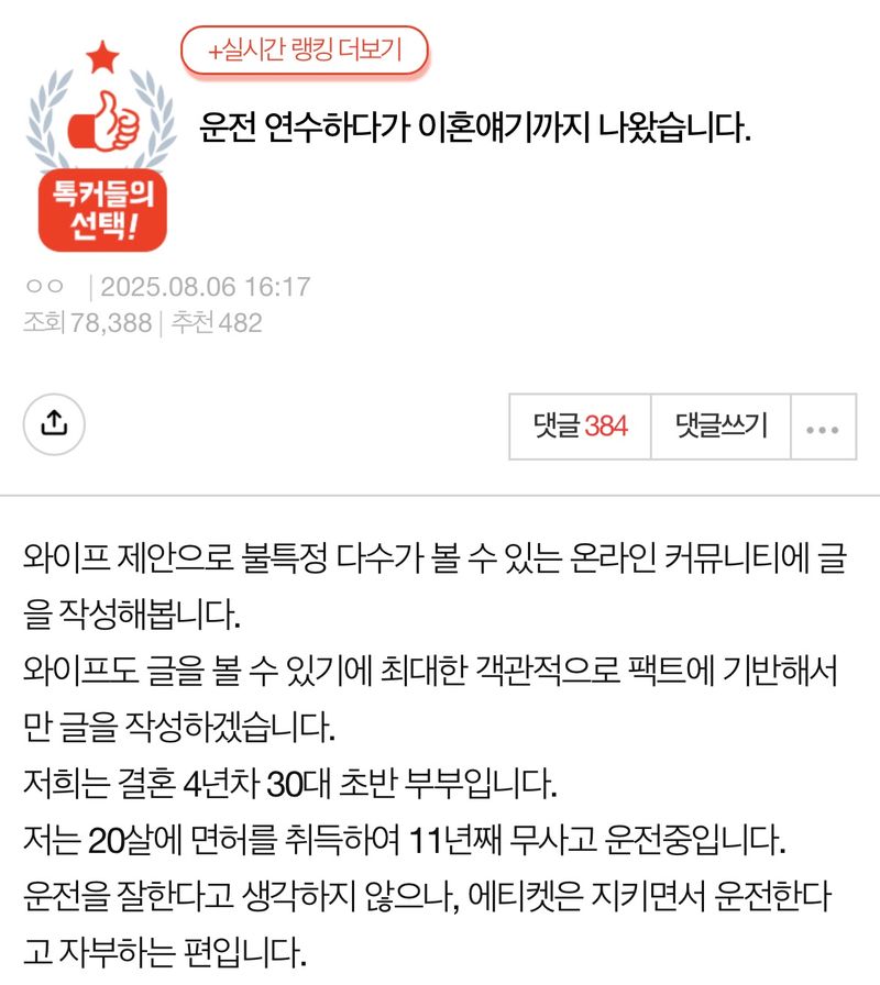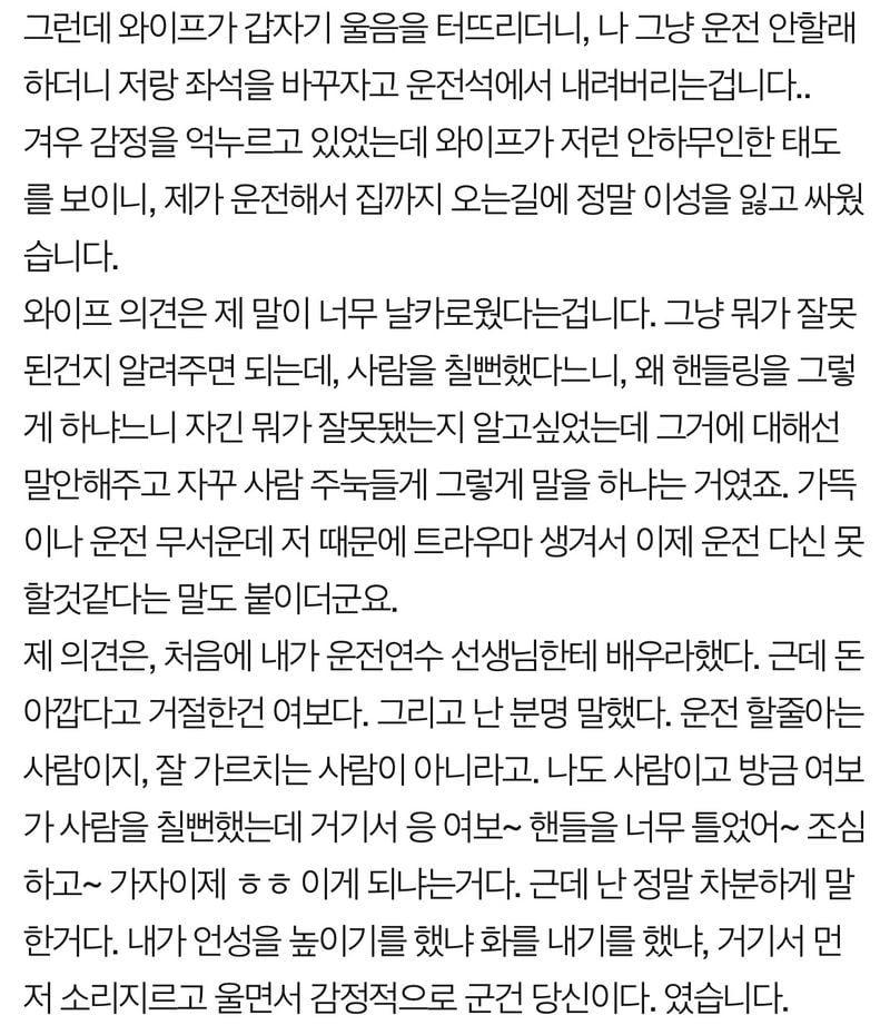 유머운전 연수하다가 이혼 얘기까지 나왔습니다.위키뉴스 기자입력북마크공유가글자크기프린트댓글운전 연수하다가 이혼얘기까지 나왔습니다. 위키뉴스 기자[email protected]카카오톡페이스북트위터밴드URL복사