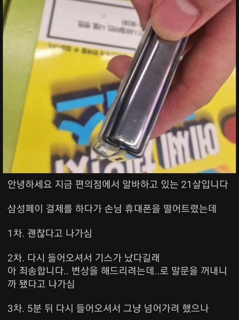 1. 편돌이가 삼성페이 결제하다가 손님 폰 떨어뜨림
