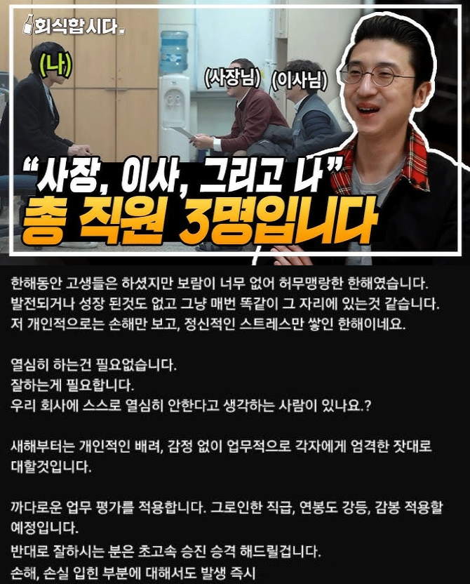 유머새해부터 직원들 나가라고 등떠미는 사장위키뉴스 기자입력북마크공유가글자크기프린트댓글새해부터 직원들 나가라고 등떠미는 사장위키뉴스 기자[email protected]카카오톡페이스북트위터밴드URL복사