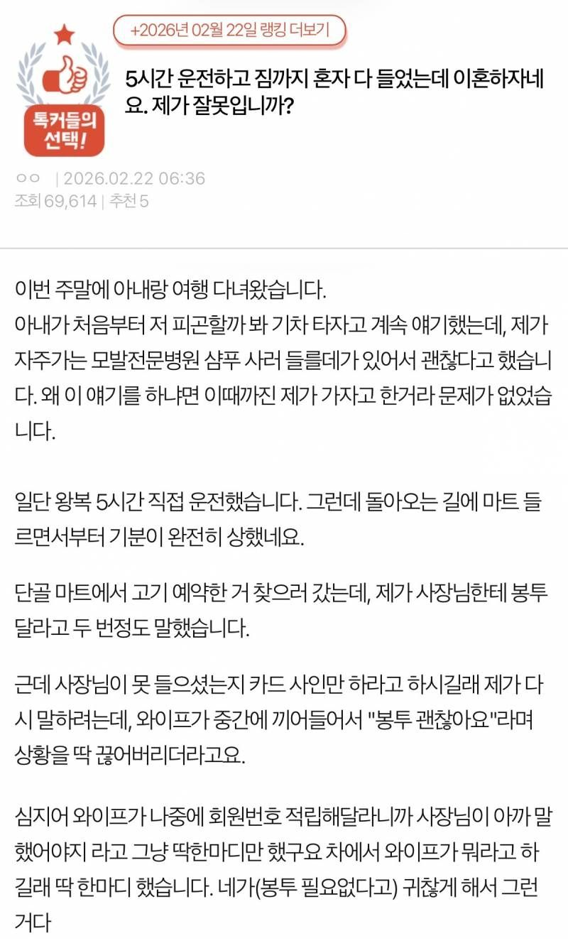 유머5시간 운전하고 짐까지 혼자 다 들었는데 이혼하자네요. 제가 잘못입니까?위키뉴스 기자입력북마크공유가글자크기프린트댓글 5시간 운전하고 짐까지 혼자 다 들었는데 이혼하자네요. 제가 잘못입니까? https://www.instiz.net/pt/7823112위키뉴스 기자[email protected]카카오톡페이스북트위터밴드URL복사