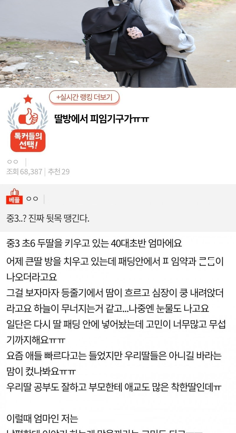 중3 딸방에서 피임기구가ㅠㅠ