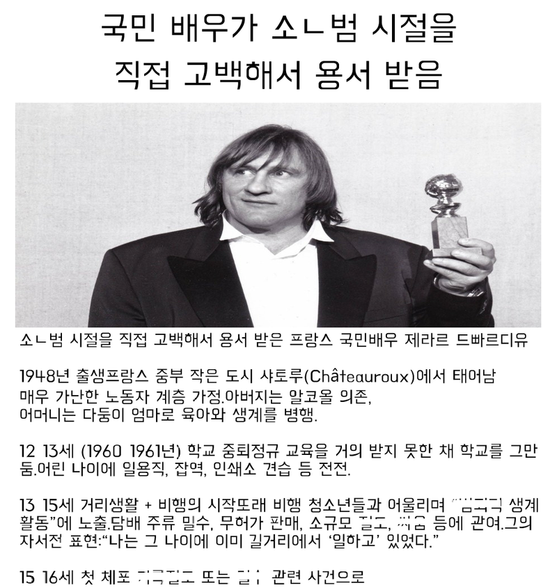 국민 배우가 소ㄴ범 시절을 직접 고백해서 용서 받음