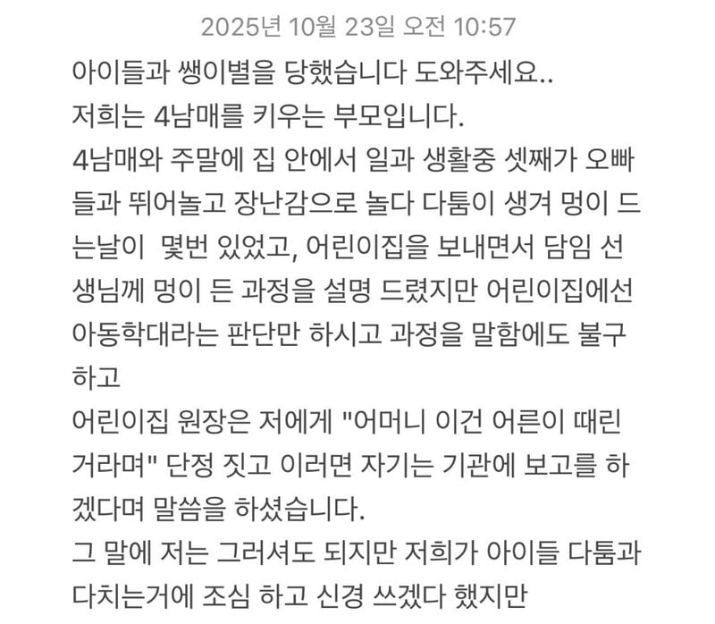 유머아이들과 생이별 당해서 억울하다는 부모 글 반전위키뉴스 기자입력북마크공유가글자크기프린트댓글아이들과 생이별을 당했습니다 도와주세요. 위키뉴스 기자[email protected]카카오톡페이스북트위터밴드URL복사