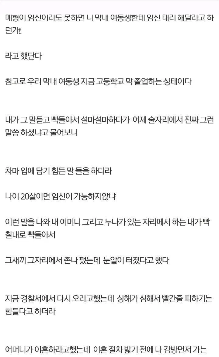 유머대리 임신 해달라는 매형 ㅍ고 ㄱ방 가는 디시인위키뉴스 기자입력북마크공유가글자크기프린트댓글매형 패고 감방가는 디시인 +후기 위키뉴스 기자[email protected]카카오톡페이스북트위터밴드URL복사