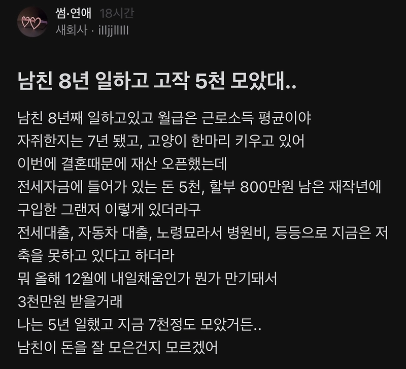 유머남친 8년 일하고 고작 5천 모았대.. (+댓글 일침)위키뉴스 기자입력북마크공유가글자크기프린트댓글남친 8년 일하고 고작 5천 모았대.. (+댓글 일침) 위키뉴스 기자[email protected]카카오톡페이스북트위터밴드URL복사