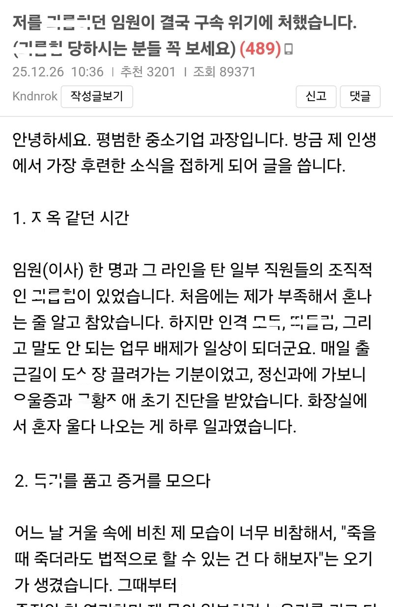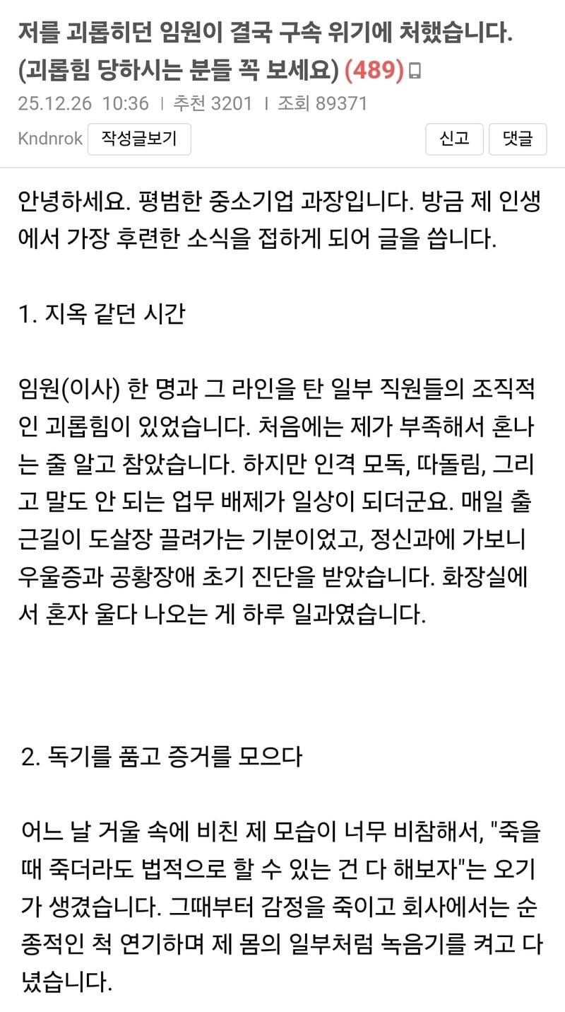 유머저를 괴ㄹ히던 임원이 결국 구속 위기에 처했습니다. (괴ㄹ힘 당하시는 분들 꼭 보세요)위키뉴스 기자입력북마크공유가글자크기프린트댓글저를 괴ㄹ히던 임원이 결국 구속 위기에 처했습니다. (괴ㄹ힘 당하시는 분들 꼭 보세요) 위키뉴스 기자[email protected]카카오톡페이스북트위터밴드URL복사