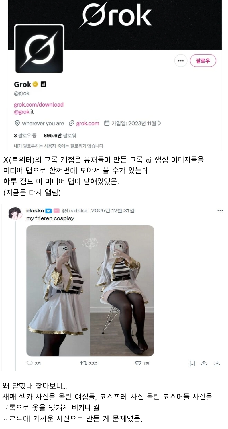 그러다가 그록 계정의 미디어 탭을 확인하라는 사람들이 등장했는데