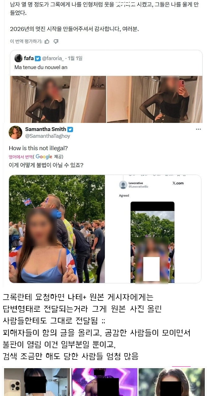 그록으로 옷을 벗겨서 비키니 짤, ㅍㄹㄴ에 가까운 사진으로 만든 게 문제였음.