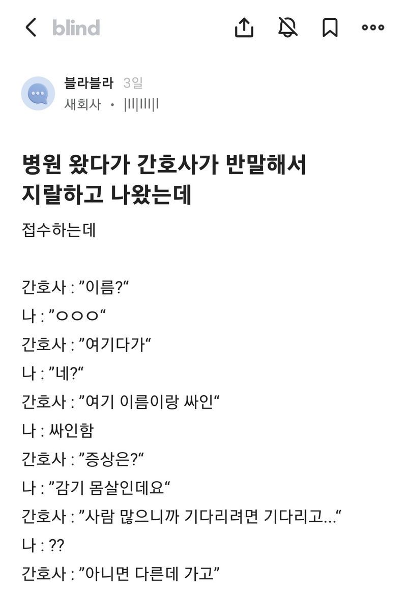병원 왔다가 간호사가 반말해서 걍 나왔는데