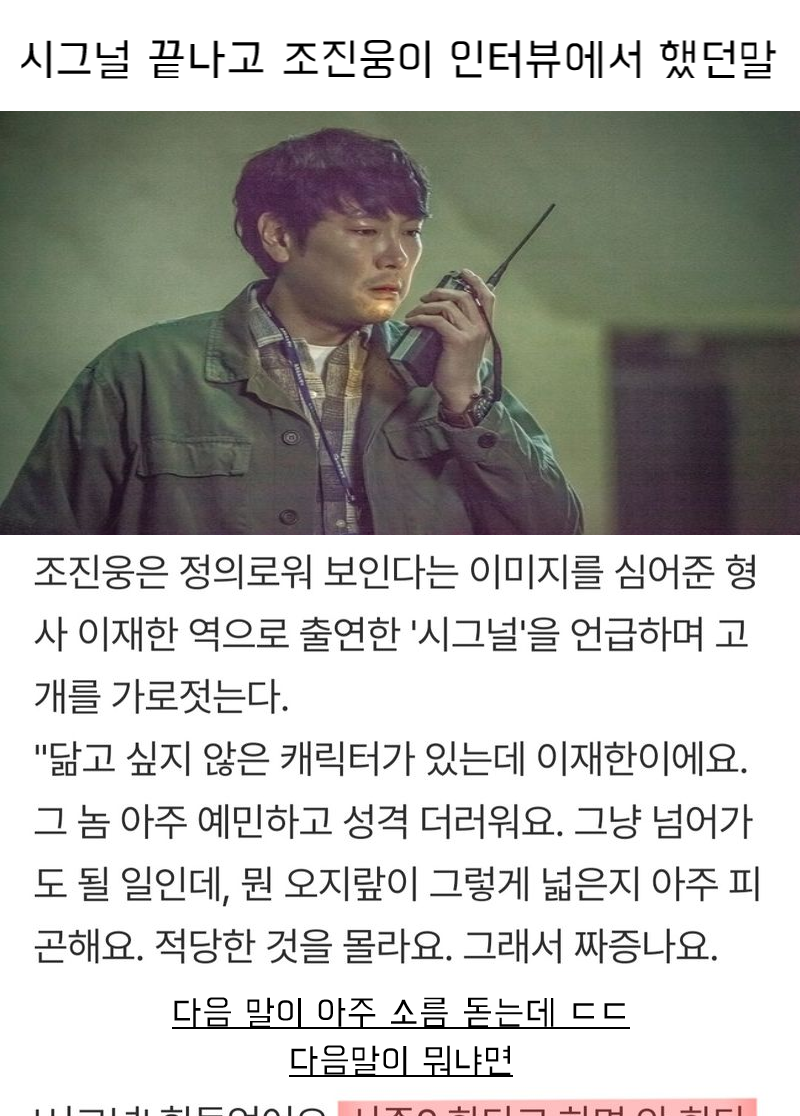유머시그널 끝나고 조진웅이 인터뷰에서 했던말위키뉴스 기자입력북마크공유가글자크기프린트댓글시즌2 한다고 하면 안할거라고 해서 그때 시즌2 ㅅㅊ했던 드덬들 다 팍식했는데 ㅈㅉ 안한다면서 왜 했음 ..?위키뉴스 기자[email protected]카카오톡페이스북트위터밴드URL복사