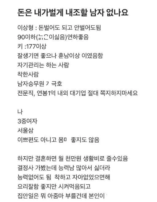 리와인드뉴스돈은 내가벌테니 내조할 남자 없나요위키뉴스 기자입력북마크공유가글자크기프린트댓글 돈은 내가벌테니 내조할 남자 없나요 위키뉴스 기자[email protected]카카오톡페이스북트위터밴드URL복사