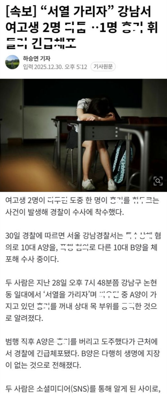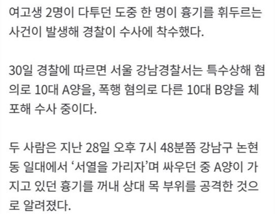 유머오늘 강남에서 여고생 둘이 ㅋ부림위키뉴스 기자입력북마크공유가글자크기프린트댓글 오늘 강남에서 여고생 둘이 ㅋ부림온라인에서 알게 된 여자 두명이서열 가리자며 현피 위키뉴스 기자[email protected]카카오톡페이스북트위터밴드URL복사