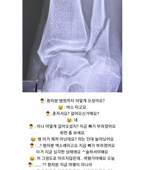 한달 뒤 멀쩡하게 걸어다녀서 나중에 의사가 보고 화들짝