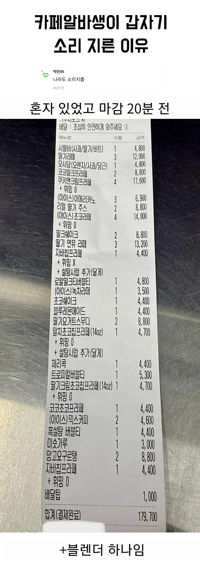 카페알바생이 갑자기 소리 지른 이유