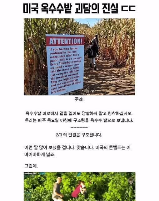 미국 옥수수밭 괴담의 진실 ㄷㄷ