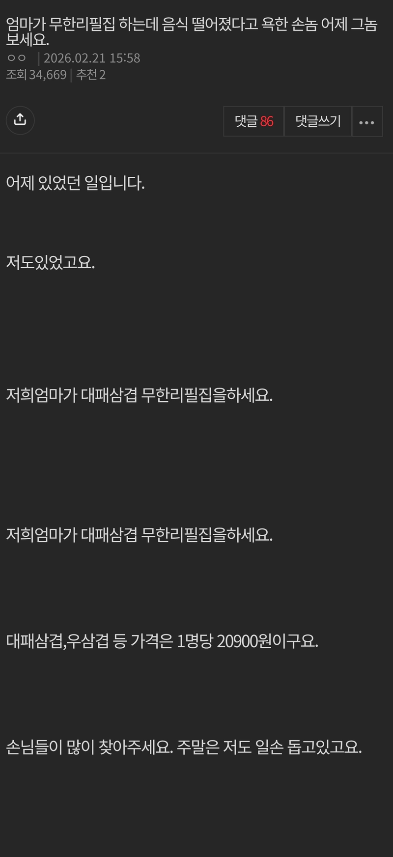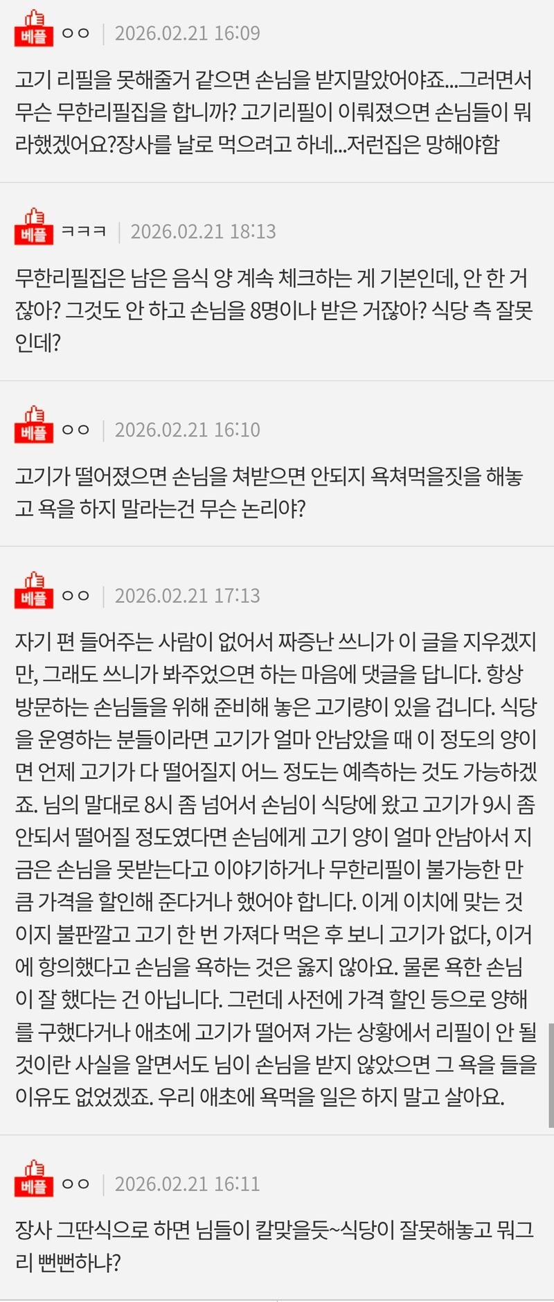 유머엄마가 무한리필집하는데 음식 떨어졌다고.... 욕한 손님 보세요.위키뉴스 기자입력북마크공유가글자크기프린트댓글엄마가 무한리필집하는데 음식 떨어졌다고.... 욕한 손님 보세요. 위키뉴스 기자[email protected]카카오톡페이스북트위터밴드URL복사