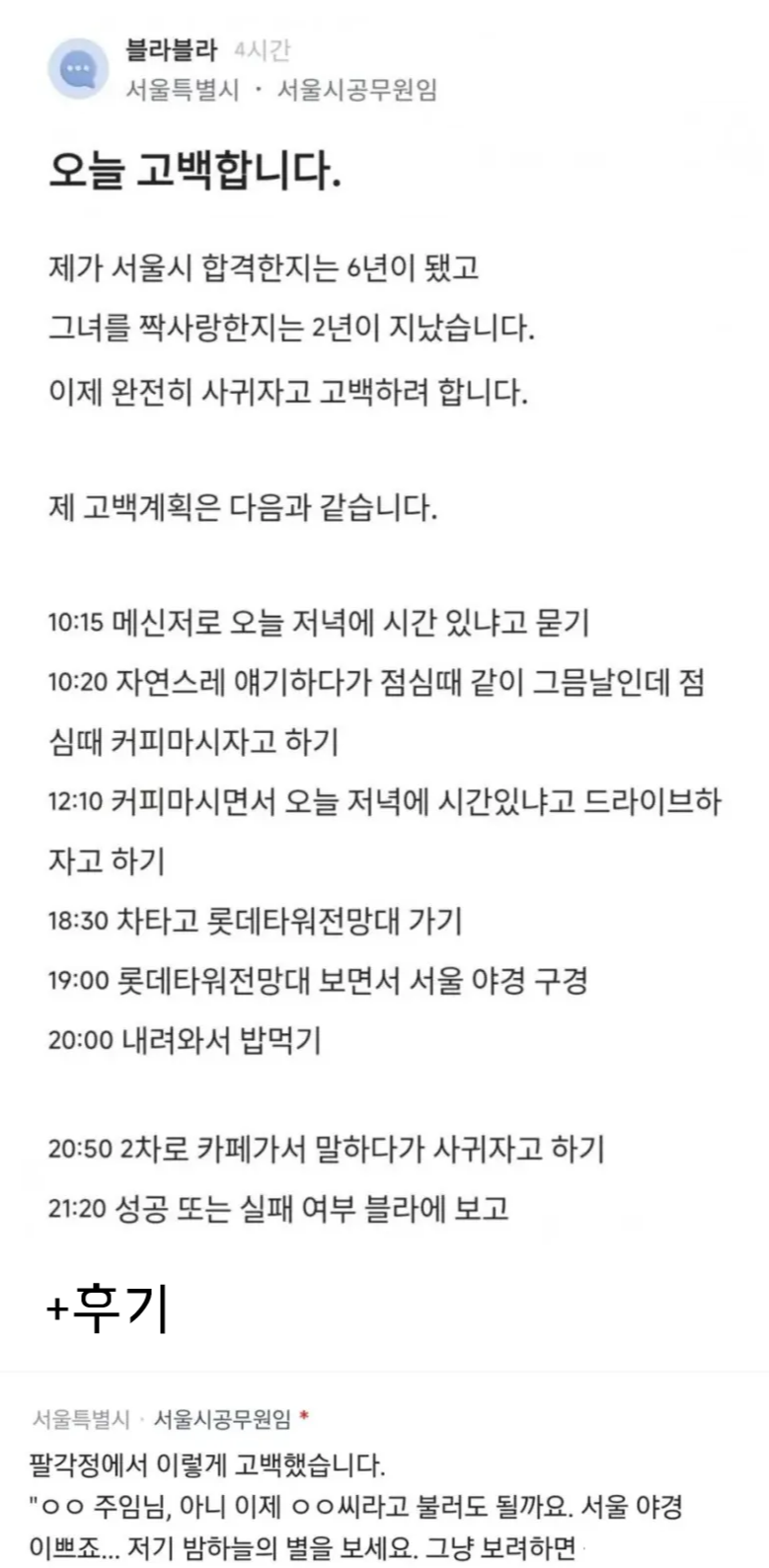 유머고백하러 간 서울시 공무원의 최후위키뉴스 기자입력북마크공유가글자크기프린트댓글 고백하러 간 서울시 공무원의 최후위키뉴스 기자[email protected]카카오톡페이스북트위터밴드URL복사